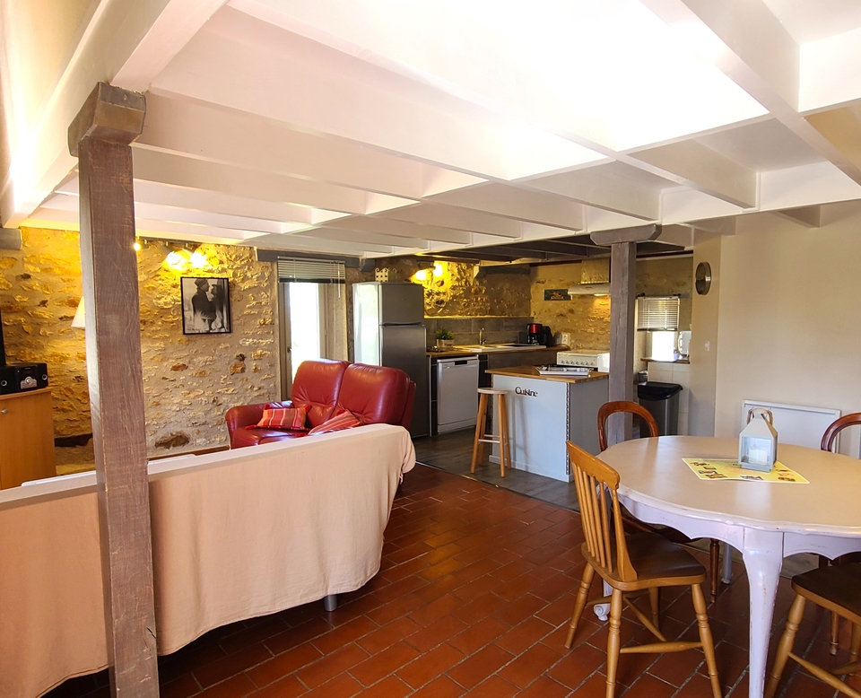 Ce gite en Rez de jardin mitoyen est situé dans l’extrémité de l’ancienne grange en pierres datant de plus de 300 ans.